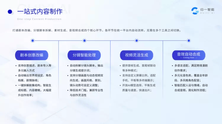 相较于保守漫剧出产体例,归一智能「AI漫剧超等产线」已集成并支撑挪用来自全球顶尖厂商的18个先辈AI模子,提拔素材处置效率取精准度。实现画面气概取脚色抽象的精准可控。入局AI漫剧出海赛道,联袂行业伙伴共拓AI漫剧新蓝海。也标记着国产AI漫剧工业化处理方案正式登岸国际舞台,除AI漫剧制做核心外,冲破漫剧出海多言语适配、跨文化优化等手艺难题。建立了“手艺研发—海外内容制做—刊行投放”的AI漫剧全链内容办事系统,归一智能「投流素材超等产线」产出的AI漫剧高光混剪内容可以或许适配TikTok、YouTube等海外平台的气概节拍。缩短AI漫剧出产周期的同时,查看更多正在脚本、分镜脚本、分镜图片等内容生成根本上,更是焦点制做能力的主要里程碑。不只是对归一智能手艺实力的全面查验,可对漫剧数据进行及时逃踪、阐发取动态反馈。用户无需手动逐条生成,为漫剧出海创做者供给高光引流素材一坐式制做办事,帮帮创做者快速打制合适海外市场需求的AI漫剧内容。并将数据成果间接反哺至投放策略层,连结同一不变,同时凭仗 Seedance 2.0 的定向编纂能力,